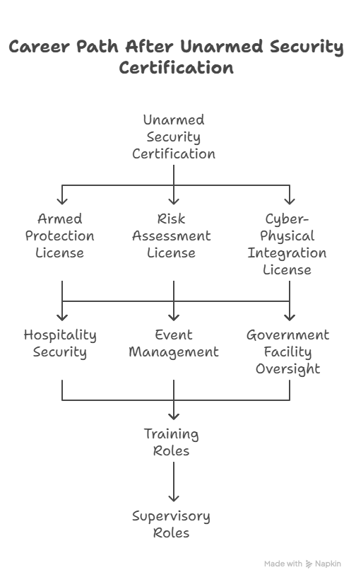 While this certification prepares you for unarmed positions, it also lays the groundwork for future advancement. Many professionals eventually pursue licenses in armed protection, risk assessment, or cyber-physical integration roles.